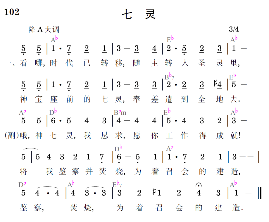 哦,神七灵,我恳求,愿你工作得成就!将我鉴察并焚烧,为着召会的建造,鉴察,焚烧,为着召会的建造。