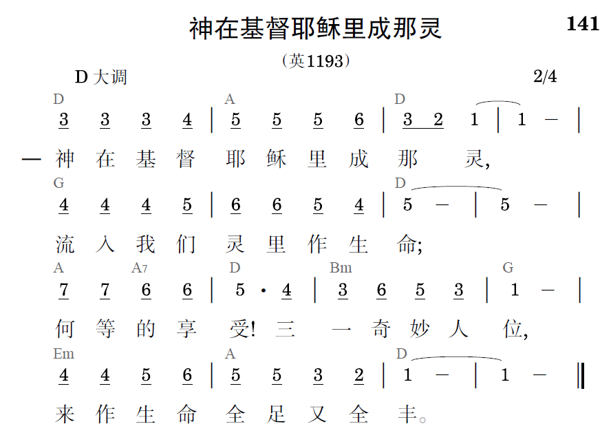 神在基督耶稣里成那灵,流入我们灵里作生命;何等的享受!三一奇妙人位,来作生命全足又全丰。
