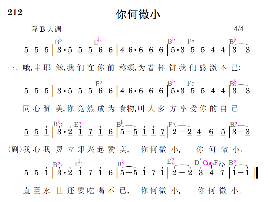 我心我灵立即兴起赞美,你何微小,你何微小。直至永世还要吃喝不已,你何微小,你何微小。
