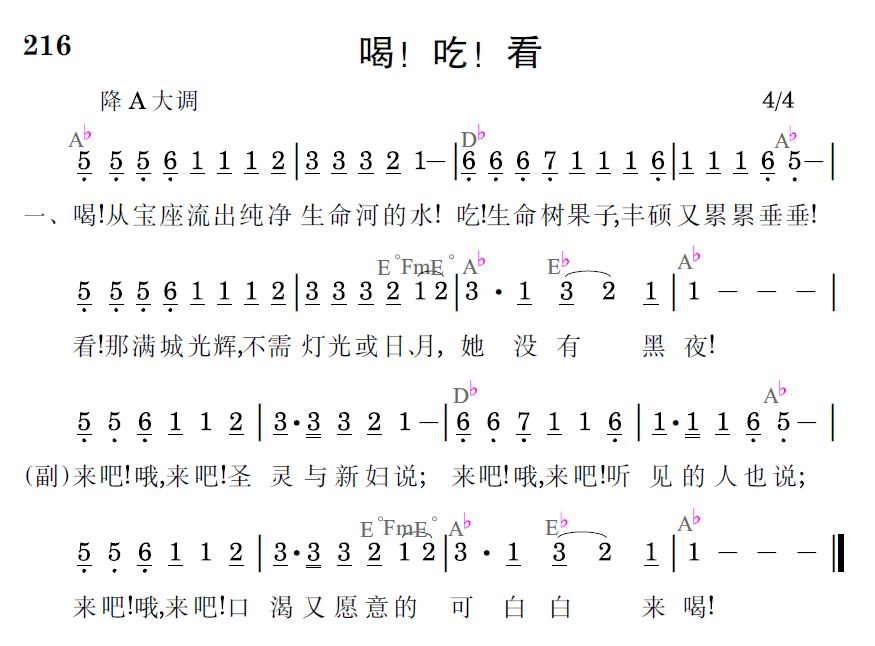 来吧!哦,来吧!圣灵与新妇说;来吧!哦,来吧!听见的人也说;来吧!哦,来吧!口渴又愿意的可白白来喝!
