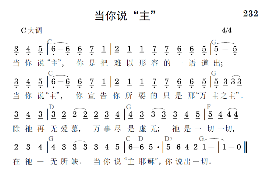 当你说“主”,你是把难以形容的一语道出;当你说“主”,你宣告你所要的只是那“万主之主”。除祂再无爱慕,万事尽是虚无;祂是一切一切,在祂一无所缺。当你说“主耶稣”,你说出一切。
