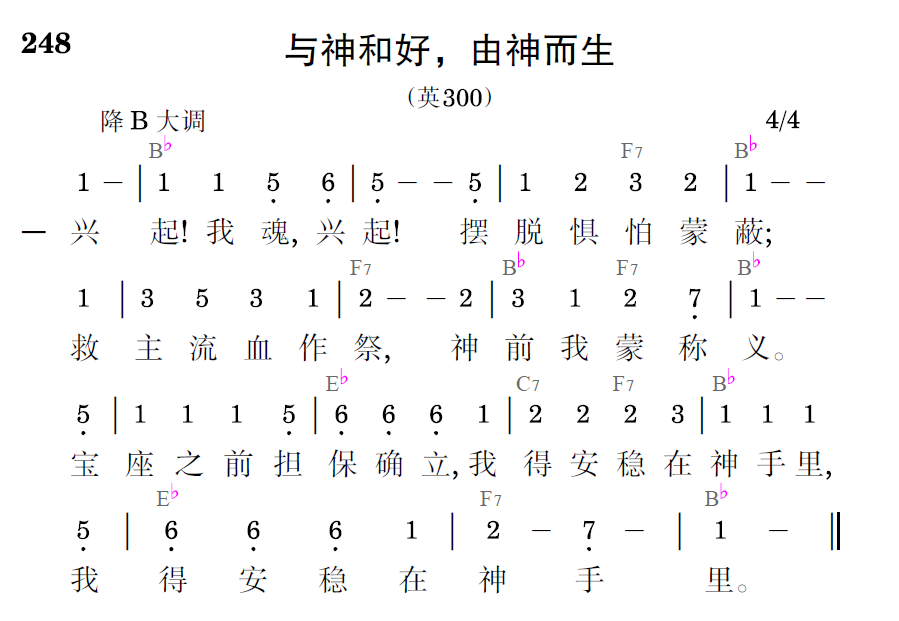 兴起!我魂,兴起!摆脱惧怕蒙蔽;救主流血作祭,神前我蒙称义。宝座之前担保确立,我得安稳在神手里,我得安稳在神手里。