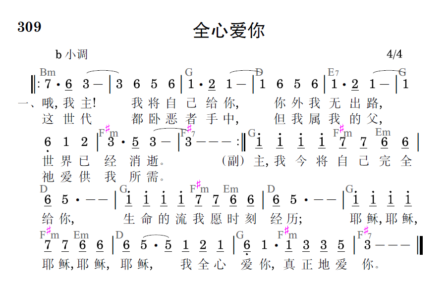 主,我今将自己完全给你,生命的流我愿时刻经历;耶稣,耶稣,耶稣,耶稣,耶稣,我全心爱你,真正的爱你。