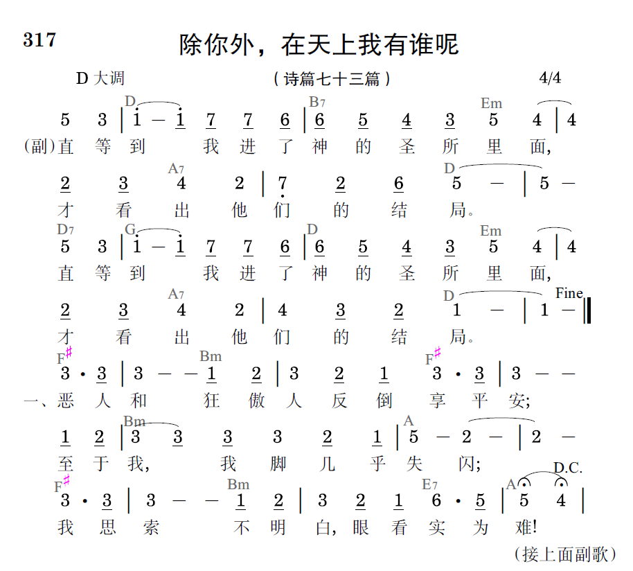 除你外,在天上我岂有谁呢?在地上我也无所爱慕;你是我的力量和永远之福!