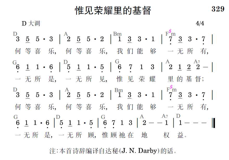 注:本首诗辞编译自达秘(J. N. Darby)的话。