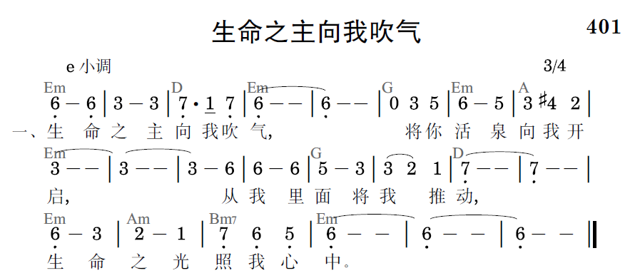 生命之主向我吹气,将你活泉向我开启,从我里面将我推动,生命之光照我心中。