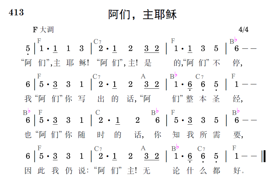 “阿们”,主耶稣!“阿们”,主!是的“阿们”不停,我“阿们”你写出的话,“阿们”整本圣经,也“阿们”你随时的话,你知我所需要,因此我仍说:“阿们”主!无论什么都好。