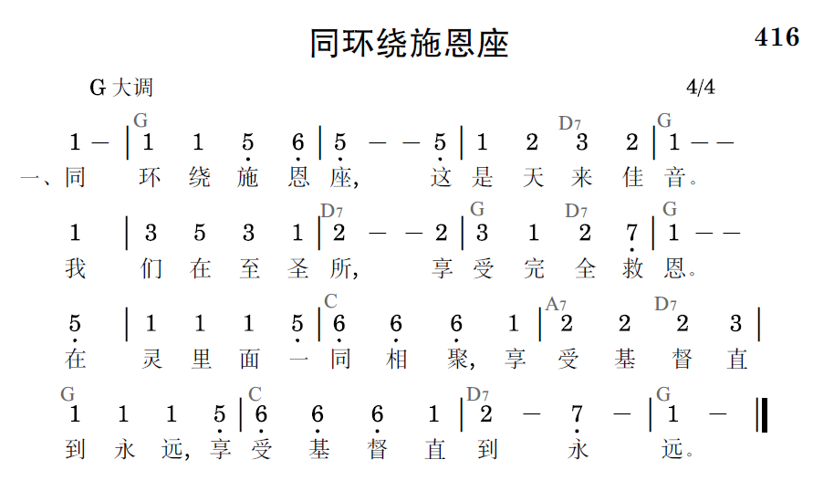 同环绕施恩座,这是天来佳音。我们在至圣所,享受完全救恩。在灵里面一同相聚,享受基督直到永远,享受基督直到永远。