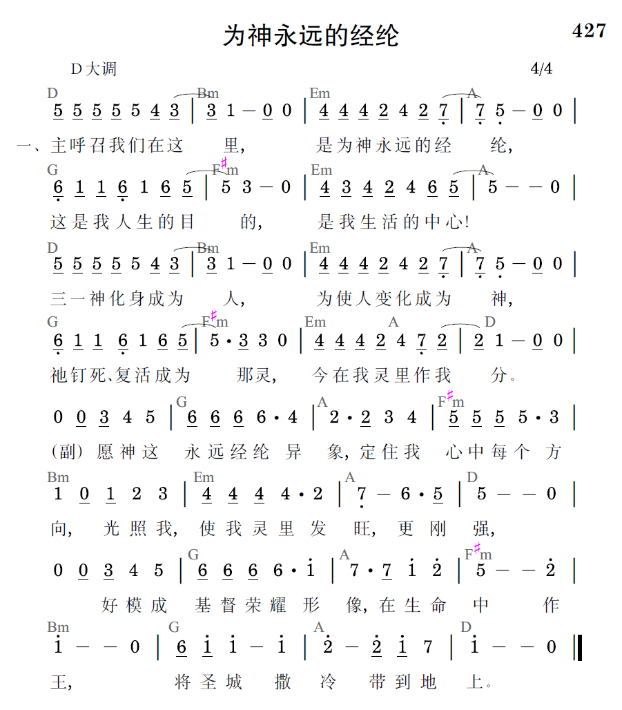 愿神这永远经纶异象,定住我心中每个方向,光照我,使我灵里发旺,更刚强,好模成基督荣耀形像,在生命中作王,将圣城撒冷带到地上。
