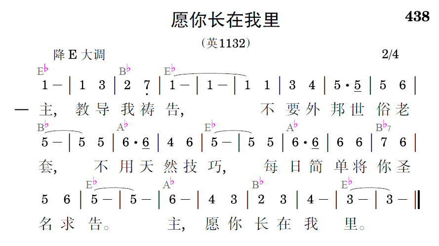 主,教导我祷告,不要外邦世俗老套,不用天然技巧,每日简单将你圣名求告。主,愿你长在我里。