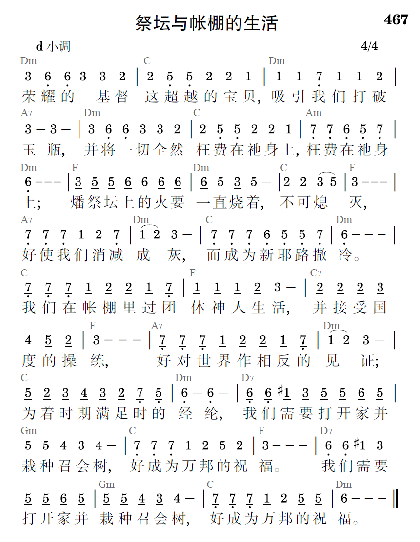 荣耀的基督这超越的宝贝,吸引我们打破玉瓶,并将一切全然枉费在祂身上,枉费在祂身上;燔祭坛上的火要一直烧着,不可熄灭,好使我们消减成灰,而成为新耶路撒冷。我们在帐棚里过团体神人生活,并接受国度的操练,好对世界作相反的见证;为着时期满足时的经纶,我们需要打开家并栽种召会树,好成为万邦的祝福。我们需要打开家并栽种召会树,好成为万邦的祝福。