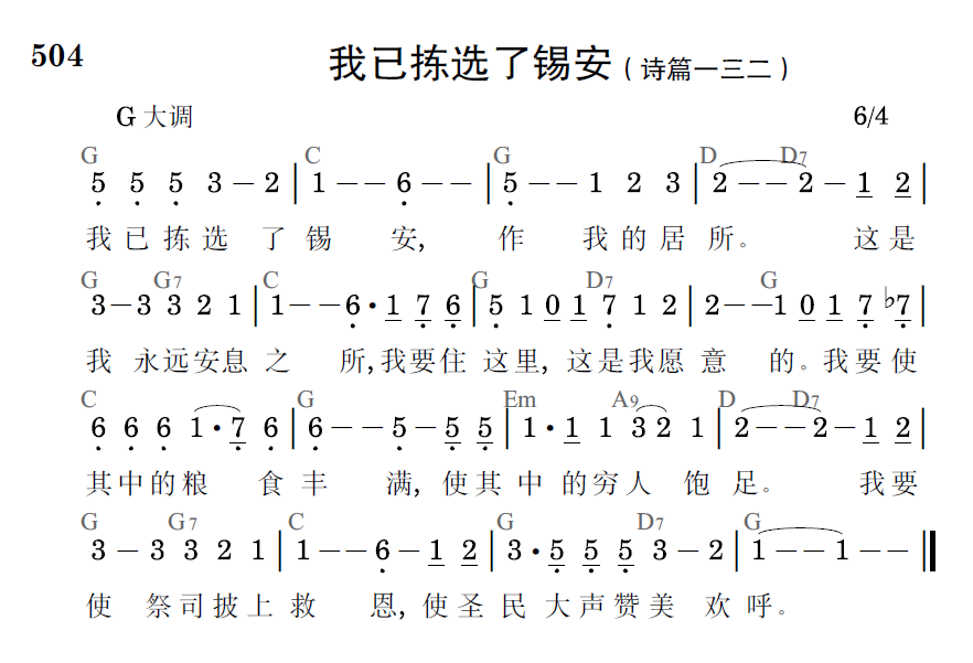 我已拣选了锡安,作我的居所。这是我永远安息之所,我要住这里,这是我愿意的。我要使其中的粮食丰满,使其中的穷人饱足。我要使祭司披上救恩,使圣民大声赞美欢呼。