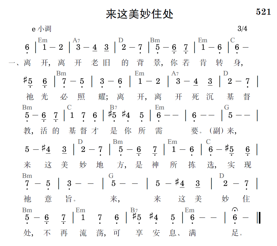 来,来这美妙地方,是神所拣选,实现祂意旨。来,来这美妙住处,不再流荡,可享安息、满足。