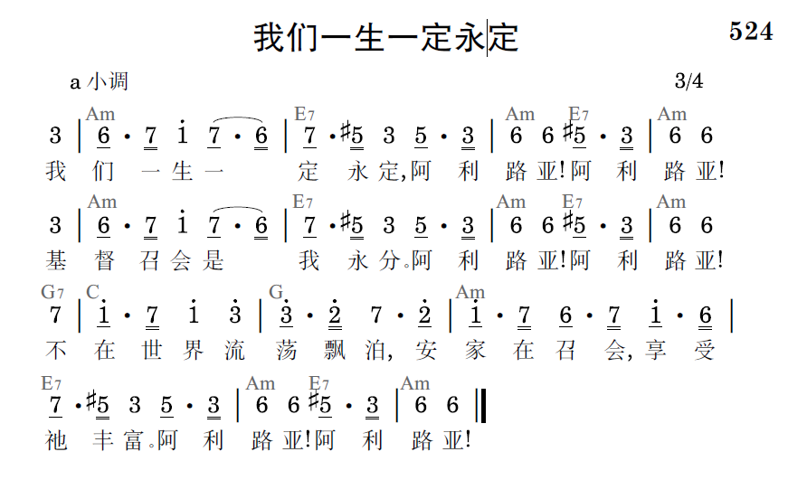 我们一生一定永定,阿利路亚!阿利路亚!基督召会是我永分。阿利路亚!阿利路亚!不在世界流荡飘泊,安家在召会,享受祂丰富。阿利路亚!阿利路亚!