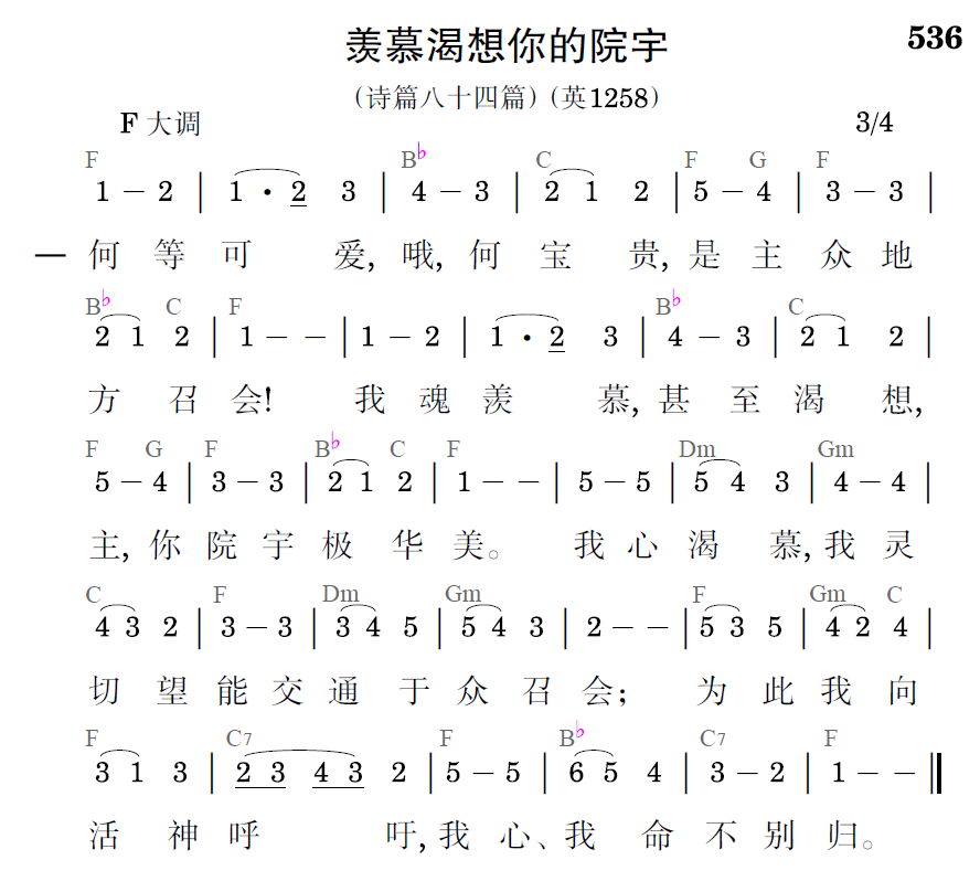 何等可爱,哦,何宝贵,是主众地方召会!我魂羡慕,甚至渴想,主你院宇极华美。我心渴慕,我灵切望能交通于众召会;为此我向活神呼吁,我心、我命不别归。