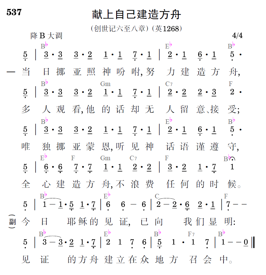 当日挪亚照神吩咐,努力建造方舟,多人观看,他的话却无人留意、接受;唯独挪亚蒙恩,听见神话谨遵守,全心建造方舟,不浪费任何的时候。