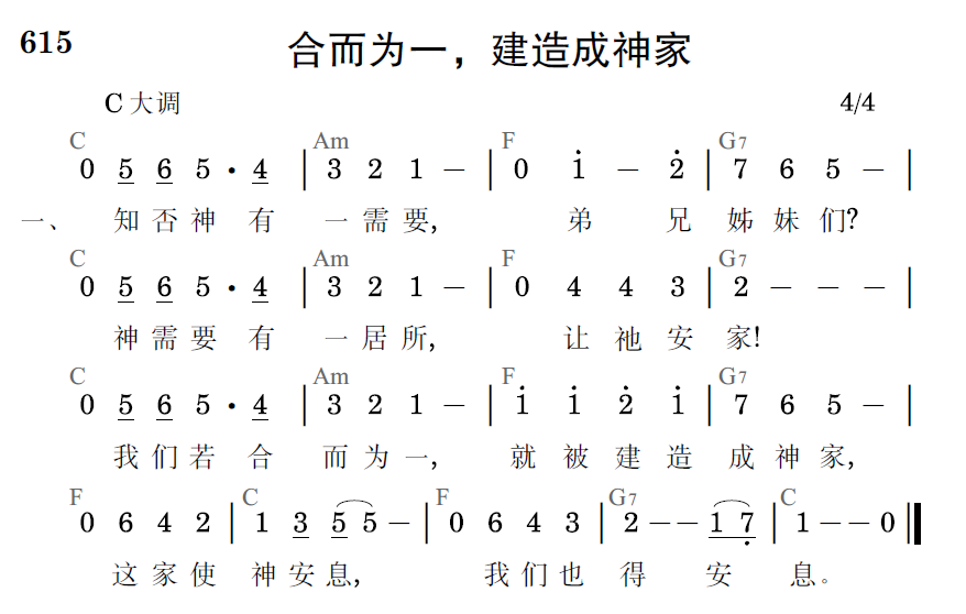 知否神有一需要,弟兄姊妹们?神需要有一居所,让祂安家!我们若合而为一,就被建造成神家,这家使神安息,我们也得安息。