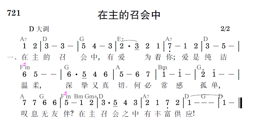 在主的召会中,有爱为着你;爱是纯洁温柔,深挚又真切。何必常感孤单,叹息无友伴?在主召会之中有丰富供应!