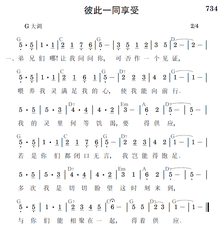 弟兄们哪!让我问问你,可否作一个见证,喂养我灵满足我的心,使我能向前行。我的灵里何等饥渴,要得供应,若是你们都闭口无言,我岂能得饱足。多次我是切切盼望这时刻来到,与你们能相聚在一起,得着供应。