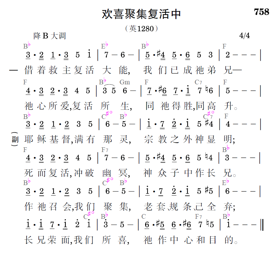 长兄复起,我们亦同,欢喜聚集复活中;天然生命,唯愿消踪,使主喜乐并得荣。