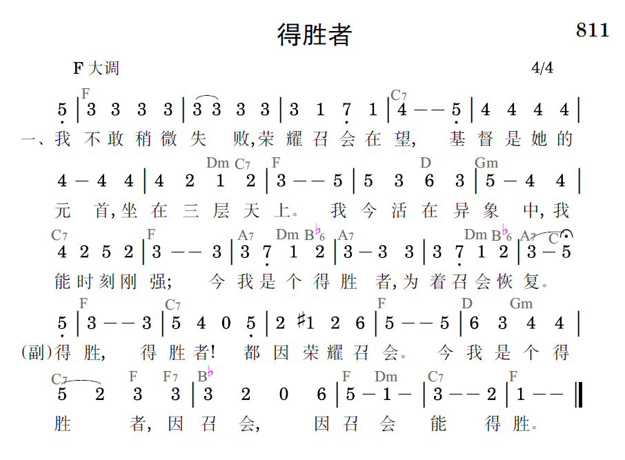 得胜,得胜者!都因荣耀召会。今我是个得胜者,因召会,因召会能得胜。