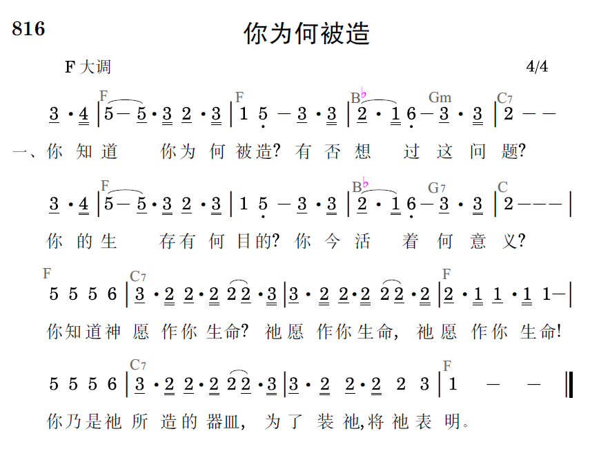 你知道你为何被造?有否想过这问题?你的生存有何目的?你今活着何意义!你知道神愿作你生命?祂愿作你生命,祂愿作你生命!你乃是祂所造的器皿,为了装祂,将祂表明。