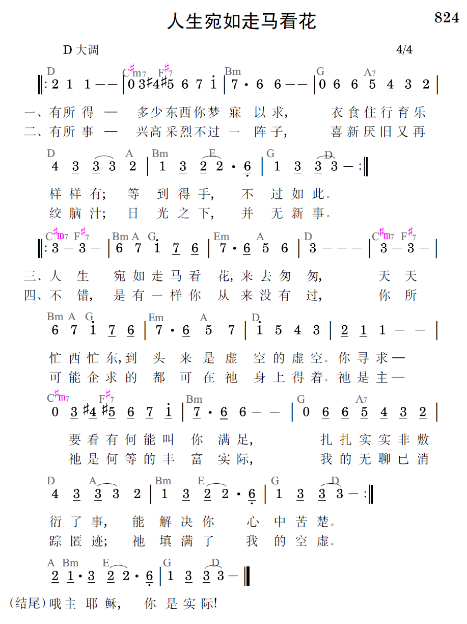 人生宛如走马看花,来去匆匆,天天忙西忙东,到头来是虚空的虚空。你寻求——要看有何能叫你满足,扎扎实实非敷衍了事,能解决你心中苦楚。