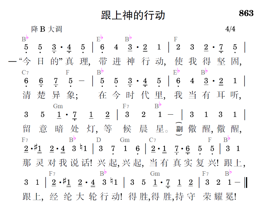 儆醒,儆醒,那灵对我说话!兴起,兴起,当有真实复兴!跟上,跟上,经纶大轮行动!得胜,得胜,持守荣耀冕!