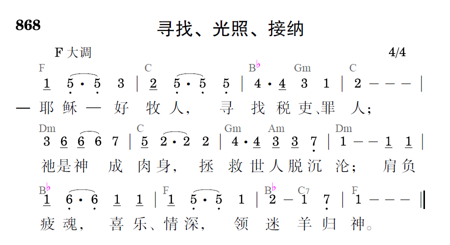 耶稣——好牧人,寻找税吏、罪人;祂是神成肉身,救世人脱沉沦;肩负疲魂,喜乐、情深,领迷羊归神。