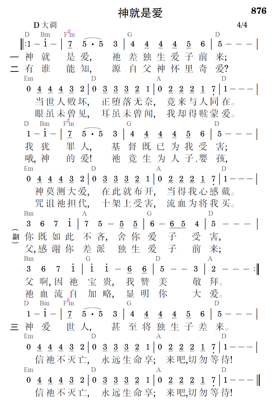 神就是爱,祂差独生爱子前来;当世人败坏,正堕落无奈,竟来与人同在。我犹罪人,基督即已为我受害;神莫测大爱,在此就布开,当得我心感戴。