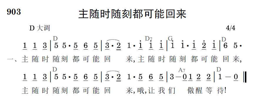 主随时随刻都可能回来,主随时随刻都可能回来,主随时随刻都可能回来,哦,让我们儆醒等待!