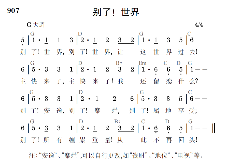 别了!世界,别了!世界,让这世界过去!主快来了,主快来了!我还留恋什么?别了!安逸,别了!糜烂,别了!属地享受;别了!所有缠累重量!从此不再回头!