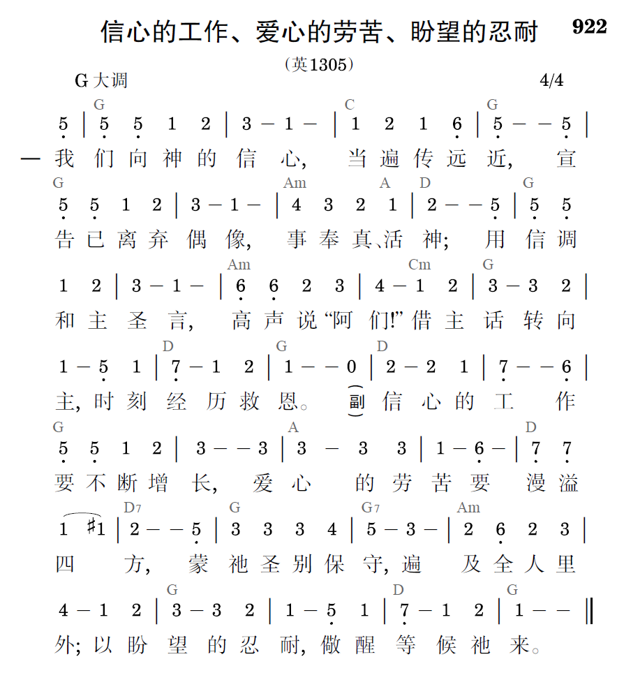 我们向神的信心,当偏传远近,宣告已离弃偶像,事奉真、活神;用信调和主圣言,高声说“阿们!”借主的话转向主,时刻经历救恩。