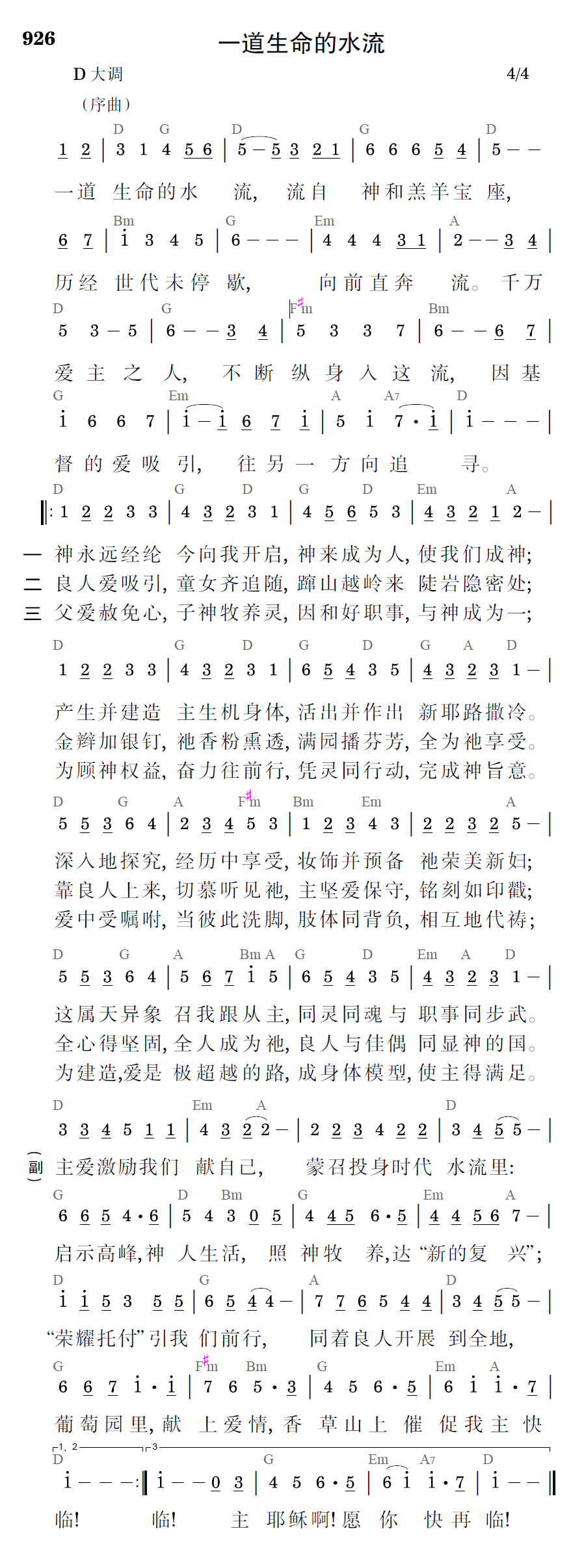 (副一、二)主爱激励我们献自己,蒙召投身时代水流里:启示高峰,神人生活照神牧养,达“新的复兴”;“荣耀托付”引我们前行,同着良人开展到全地,葡萄园里,献上爱情,香草山上催促我主快临!