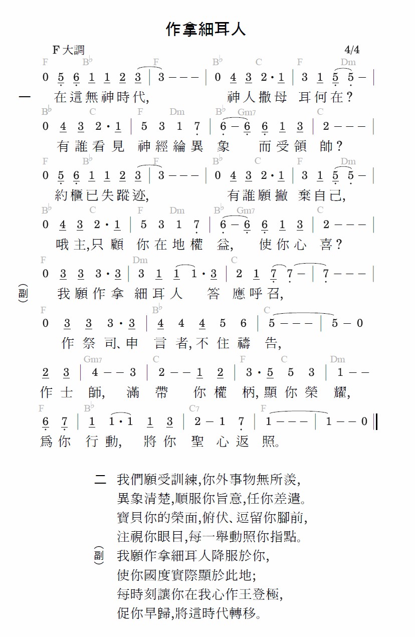 让我们拿细耳人成你伙伴,将这世代终结,照你所愿;为使你国度早显现,不再耽延,绝对奉献,作你时代青年。