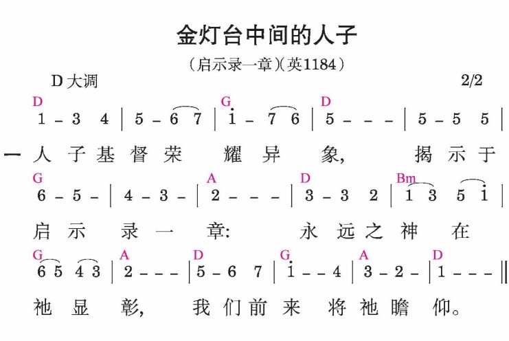 人子基督荣耀异象,揭示于启示录一章:永远之神在祂显彰,我们前来将祂瞻仰。