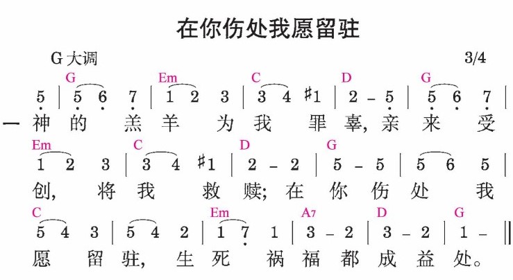 神的羔羊为我罪辜,亲来受创,将我救赎;在你伤处我愿留驻,生死祸福都成益处。