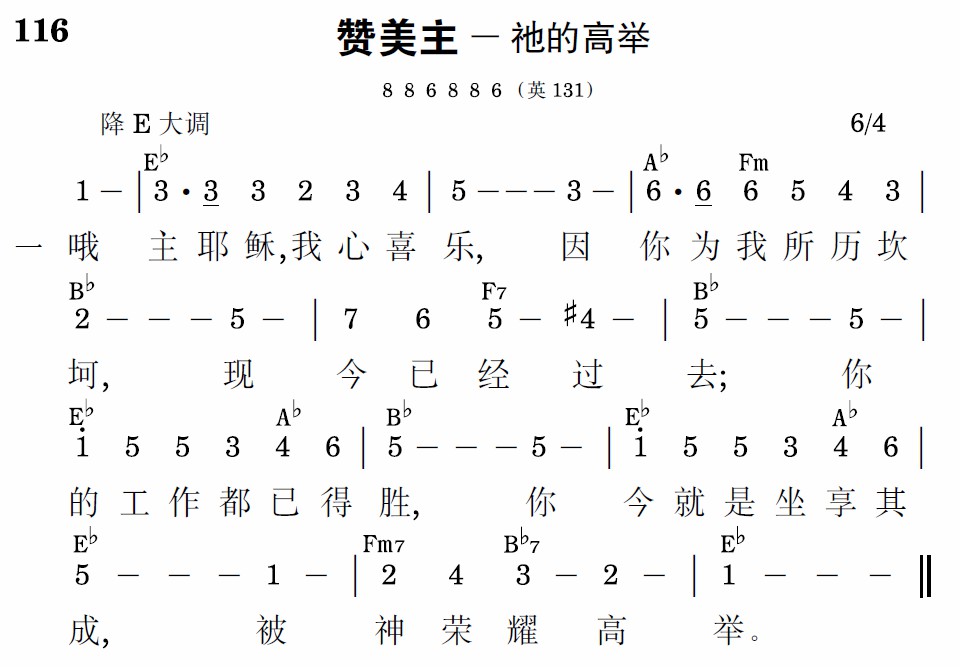 哦主耶稣,我心喜乐,因你为我所历坎坷,现今已经过去;你的工作都已得胜,你今就是坐享其成,被神荣耀高举。