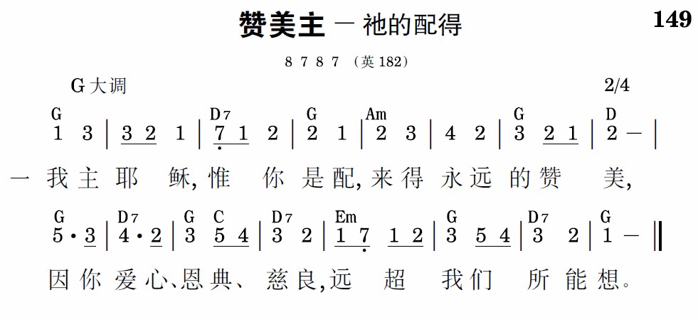 我主耶稣,唯你是配,来得永远的赞美,因你爱心、恩典、慈良,远超我们所能想。