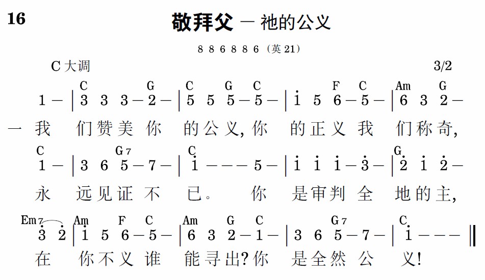 我们赞美你的公义,你的正义我们称奇,永远见证不已。你是审判全地的主,在你不义谁能寻出?你是全然公义!