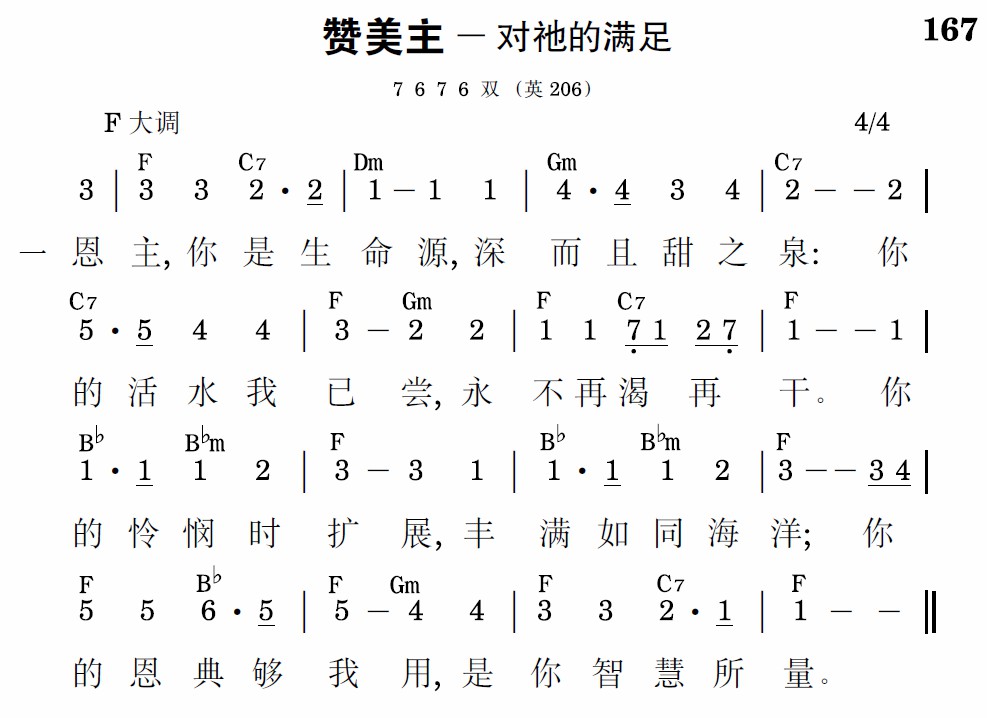 恩主,你是生命源,深而且甜之泉:你的活水我已尝,永不再渴再干。你的怜悯时扩展,丰满如同海洋;你的恩典够我用,是你智慧所量。