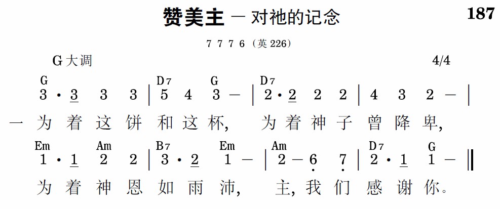 为着这饼和这杯,为着神子曾降卑,为着神恩如雨沛,主,我们感谢你。