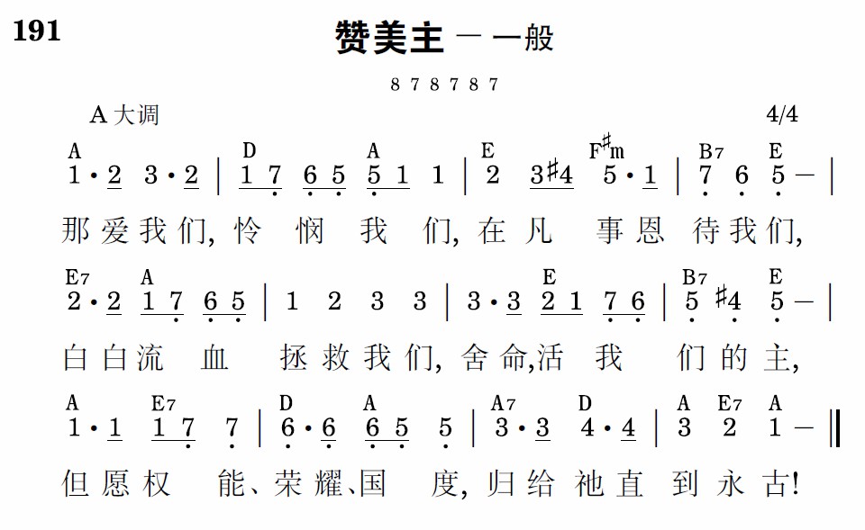 那爱我们,怜悯我们,在凡事恩待我们,白白流血拯救我们,舍命,活我们的主,但愿权能、荣耀、国度,归给祂直到永古!
