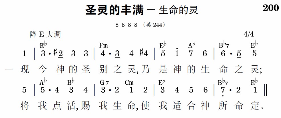 生命之灵供应生命,用神生命将我变化;更新我的里面部分,使与基督相像无差。