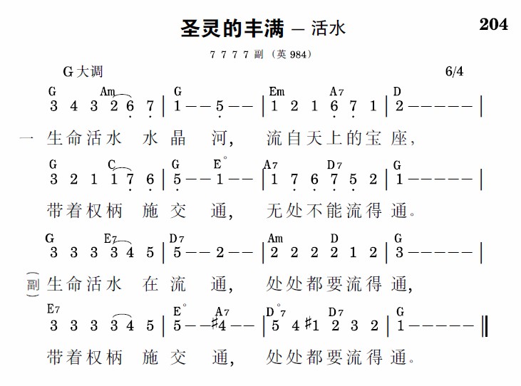 生命活水在流通,处处都要流得通,带着权柄施交通,处处都要流得通。
