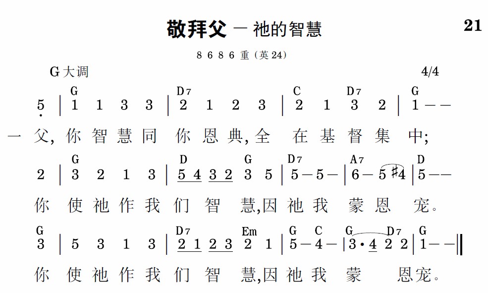 父,你智慧同你恩典,全在基督集中;你使祂作我们智慧,因祂我蒙恩宠。你使祂作我们智慧,因祂我蒙恩宠。