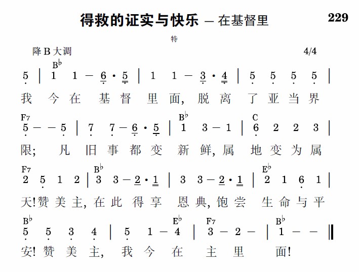 我今在基督里面,脱离了亚当界限;凡旧事都变新鲜,属地变为属天!赞美主,在此得享恩典,饱尝生命与平安!赞美主,我今在主里面!