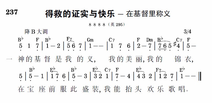 神的基督是我的义,我的美丽,我的锦衣,在宝座前服此盛装,我能抬头欢乐歌唱。