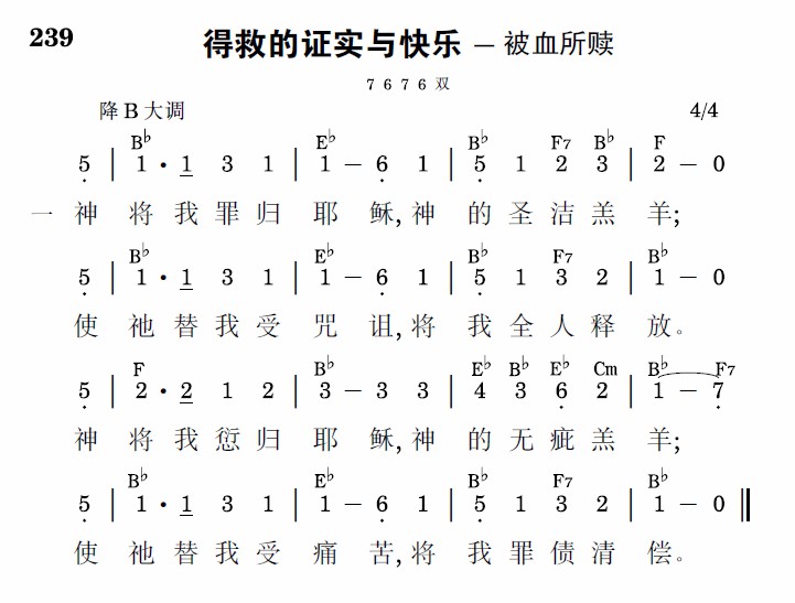 神将我罪归耶稣,神的圣洁羔羊;使祂替我受咒诅,将我全人释放。神将我愆归耶稣,神的无疵羔羊;使祂替我受痛苦,将我罪债清偿。