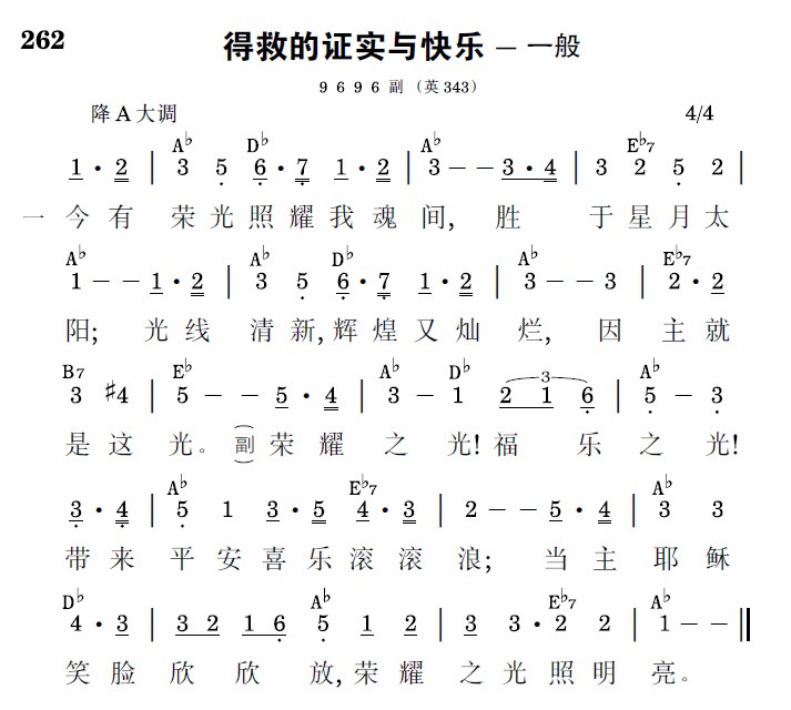 荣耀之光!福乐之光!带来平安喜乐滚滚浪;当主耶稣笑脸欣欣放,荣耀之光照明亮。